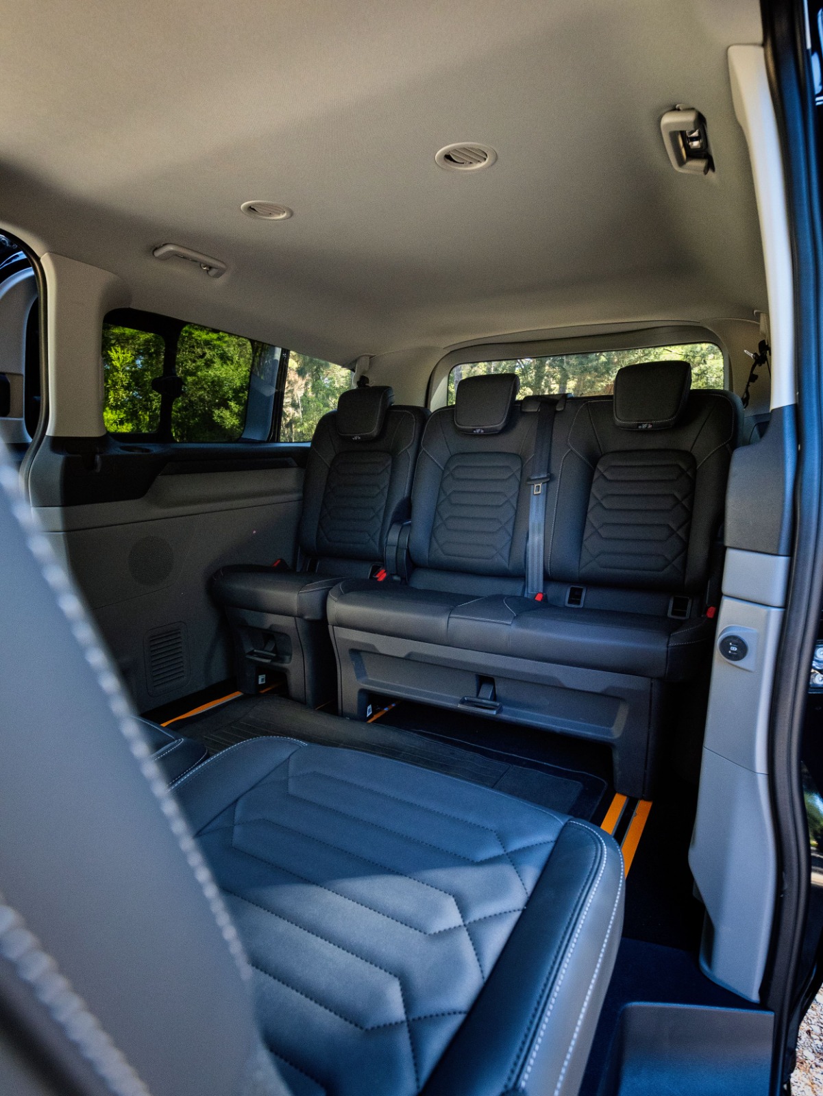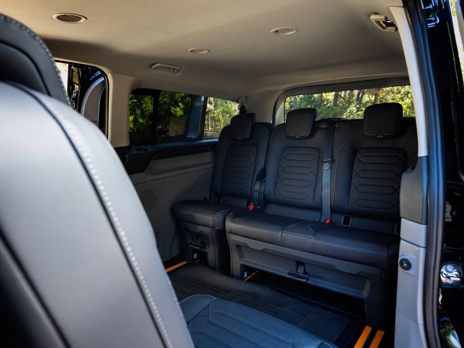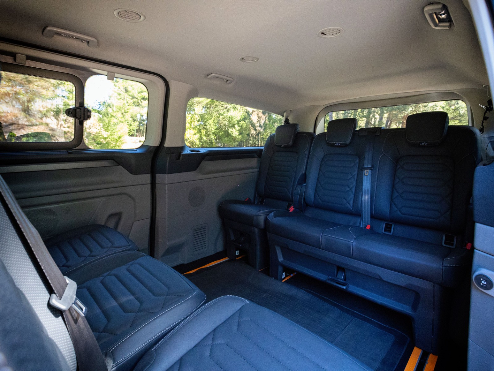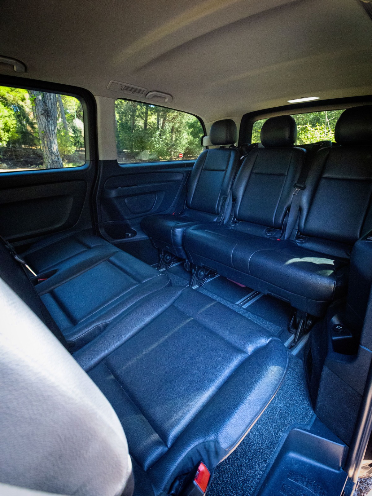 Flexible seating for up to 9 passengers provides generous legroom and quick reconfiguration for luggage-heavy trips.